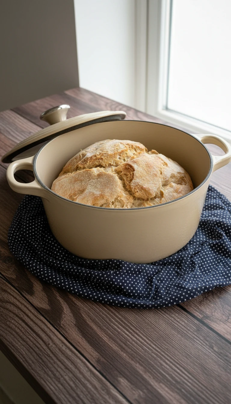 Após 40 minutos, retire a tampa da panela e asse por mais 10 minutos, ou até o pão estar dourado.