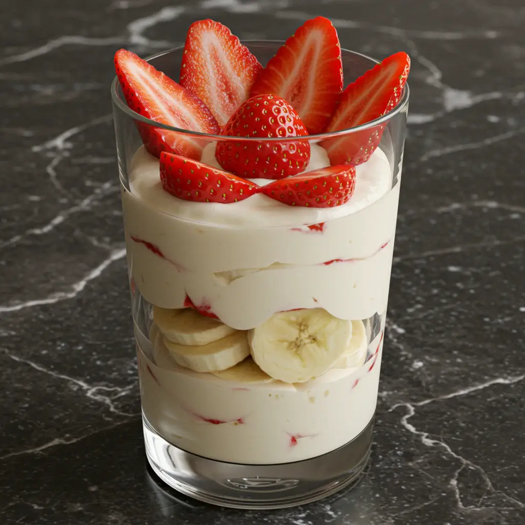 Um parfait leve e refrescante, perfeito para um lanche da tarde ou sobremesa rápida. Camadas de iogurte cremoso, morangos suculentos e banana doce se harmonizam em um deleite saboroso e fácil de preparar.