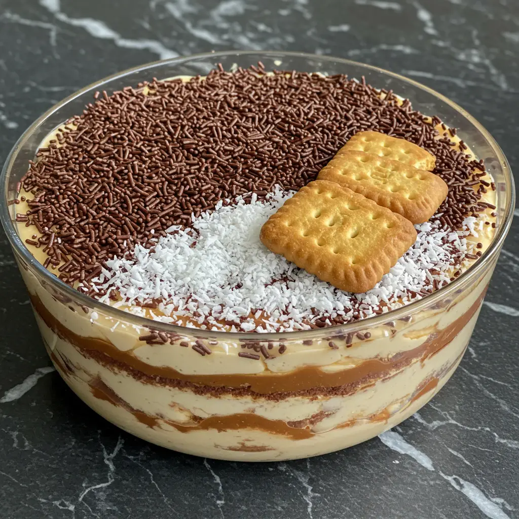 Um clássico irresistível! Camadas de biscoito maizena umedecidos em calda de chocolate, creme de leite condensado e um leve chantilly. Perfeito para encantar seus convidados!