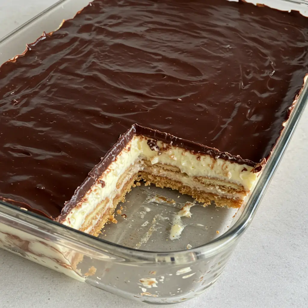Um irresistível pavê de bolacha que combina camadas cremosas de chocolate e um toque especial de leite condensado. Perfeito para adoçar qualquer ocasião!