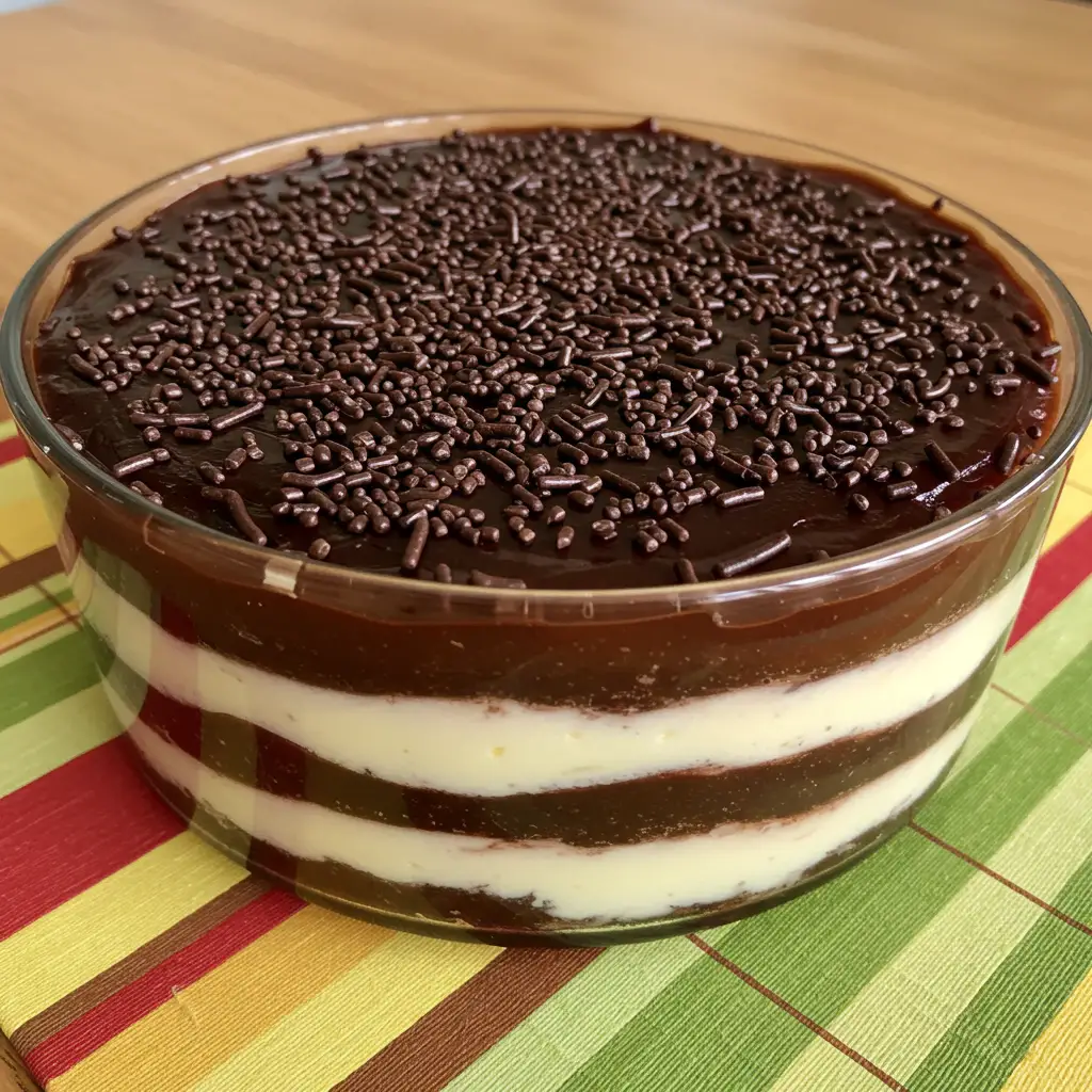 Um clássico pavê com camadas de brigadeiro cremoso, biscoitos amanteigados umedecidos em chocolate e um delicioso creme de baunilha, finalizado com um toque especial de flan de chocolate.