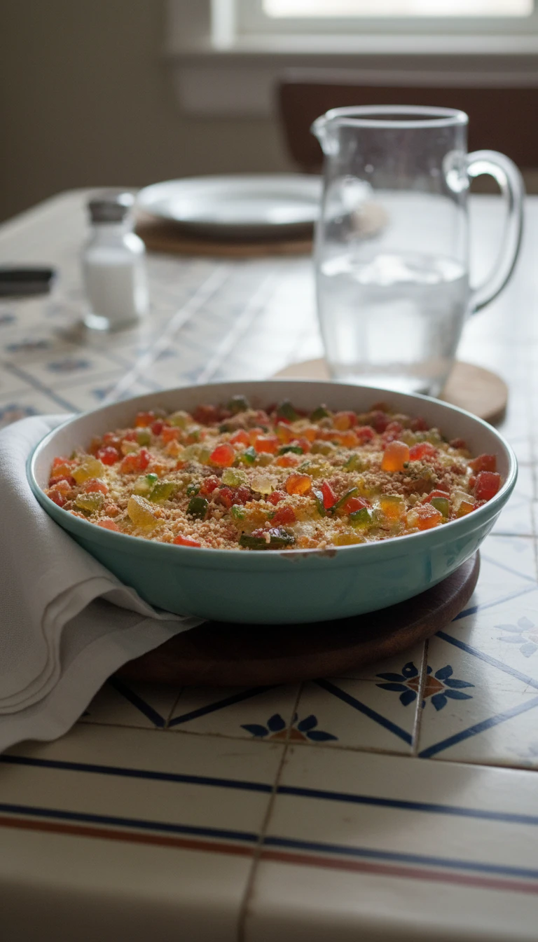 Retire do fogo e adicione as frutas cristalizadas, misturando delicadamente.