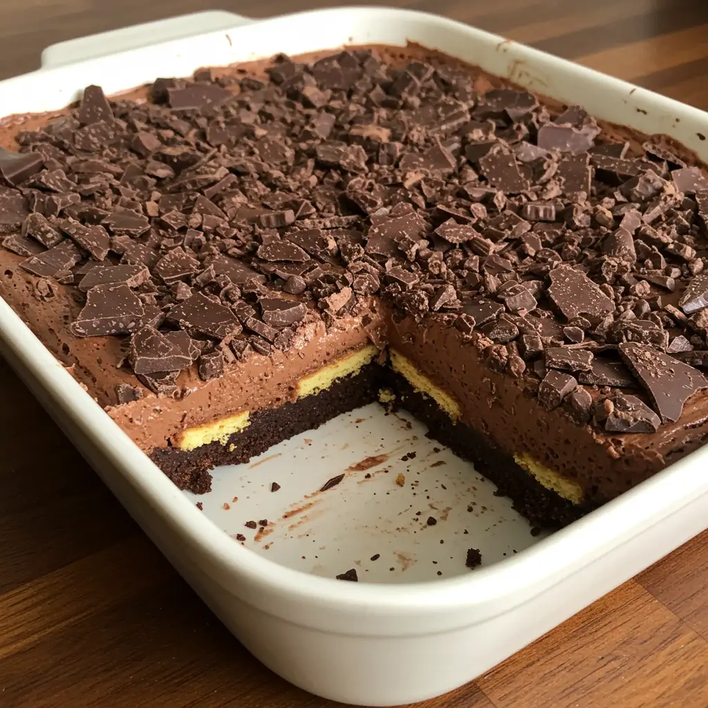 Um pavê irresistível! Camadas de biscoito de leite embebido em licor de cacau e um cremoso creme de chocolate ao leite, finalizado com raspas de chocolate. Uma sobremesa perfeita para encantar seus convidados.