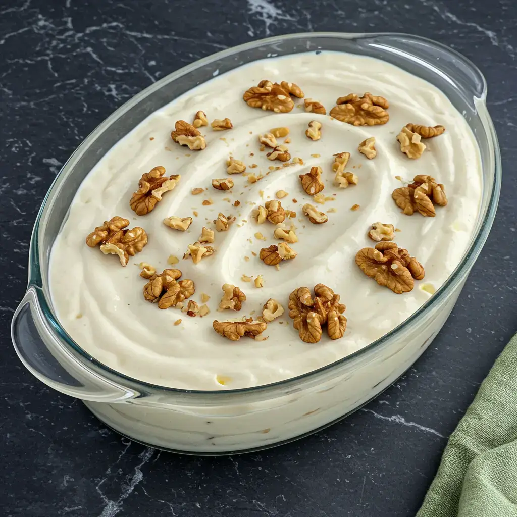 Um pavê cremoso e irresistível, com camadas de bolacha champagne umedecida em achocolatado, creme de leite em pó e deliciosa cobertura de chocolate branco e nozes. Perfeito para um lanche da tarde ou sobremesa especial!