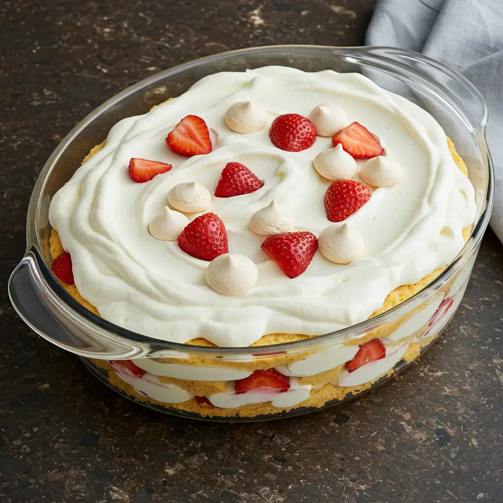 Um clássico pavê, leve e refrescante, perfeito para um almoço em família ou uma sobremesa especial. Camadas de suspiro, morangos suculentos e chantilly cremoso garantem uma experiência inesquecível.