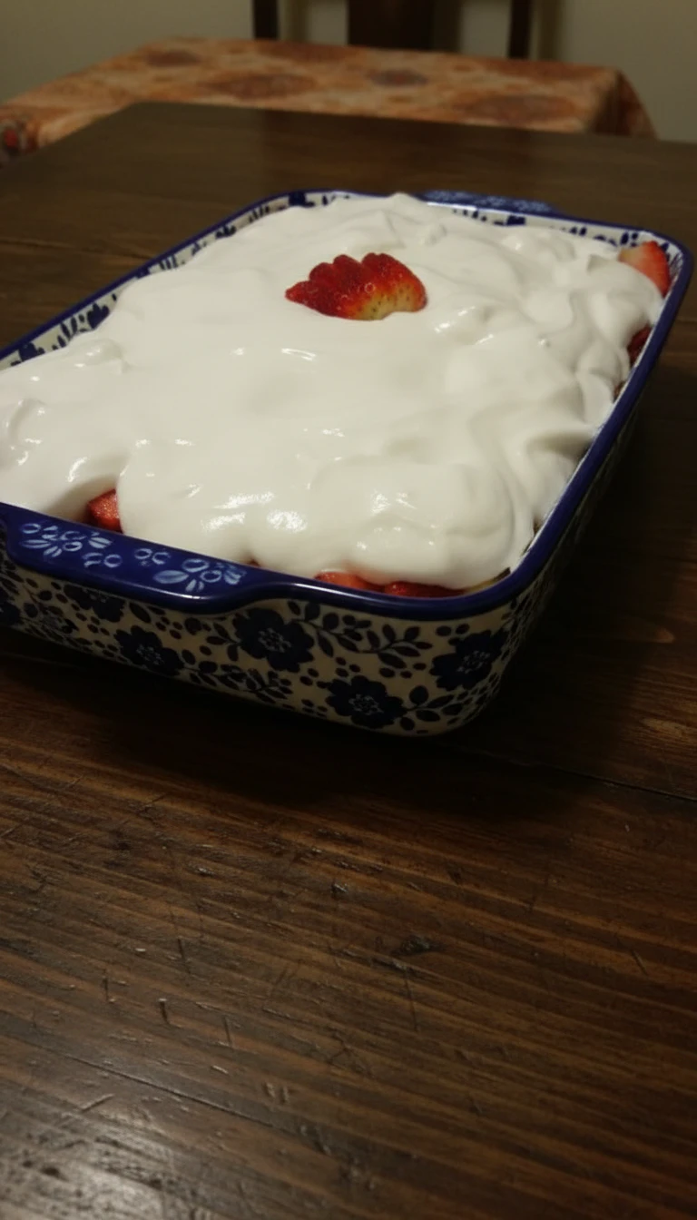 8. Finalize: Cubra o pavê com o suspiro e decore com os morangos restantes. Leve à geladeira por pelo menos 2 horas antes de servir. Nunca congele.