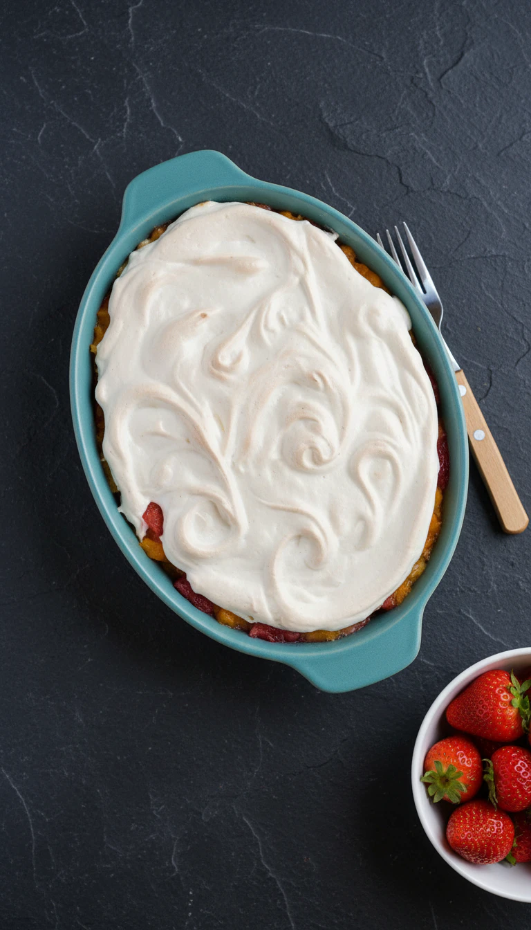 Um pavê sofisticado e delicioso! Camadas de biscoito champagne umedecido, morangos suculentos, creme suave e um merengue crocante por cima. Uma sobremesa perfeita para encantar seus convidados.