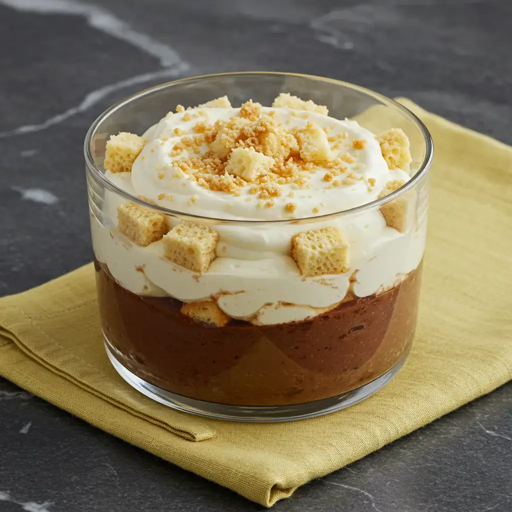 Um delicioso pavê que transforma o tradicional panetone em uma sobremesa sofisticada e irresistível. Camadas de panetone macio, creme de chocolate intenso e um suave creme branco, finalizado com coco ralado. Perfeito para encantar seus convidados!