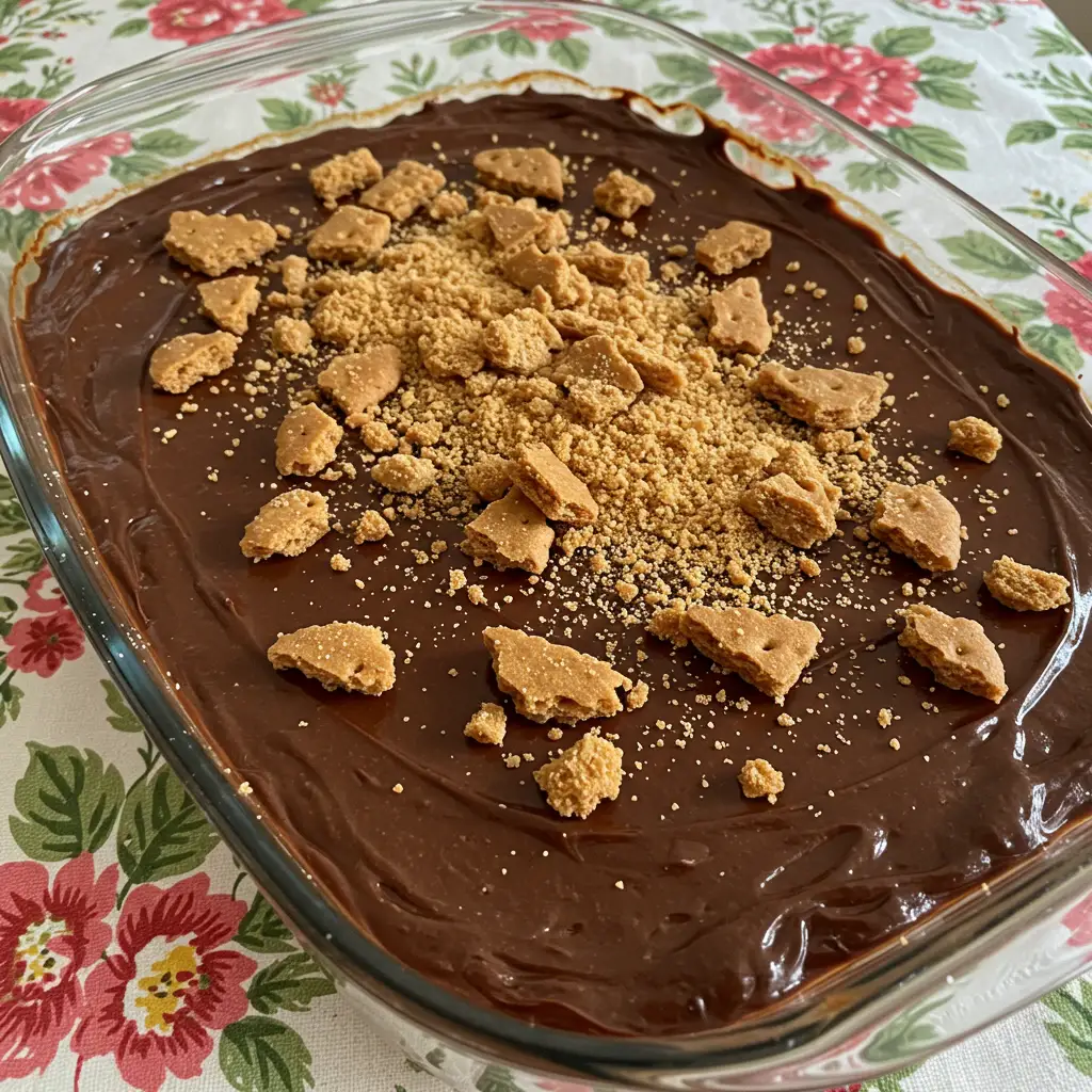 Para decorar, polvilhe biscoitos triturados ou granulado por cima da última camada de creme.