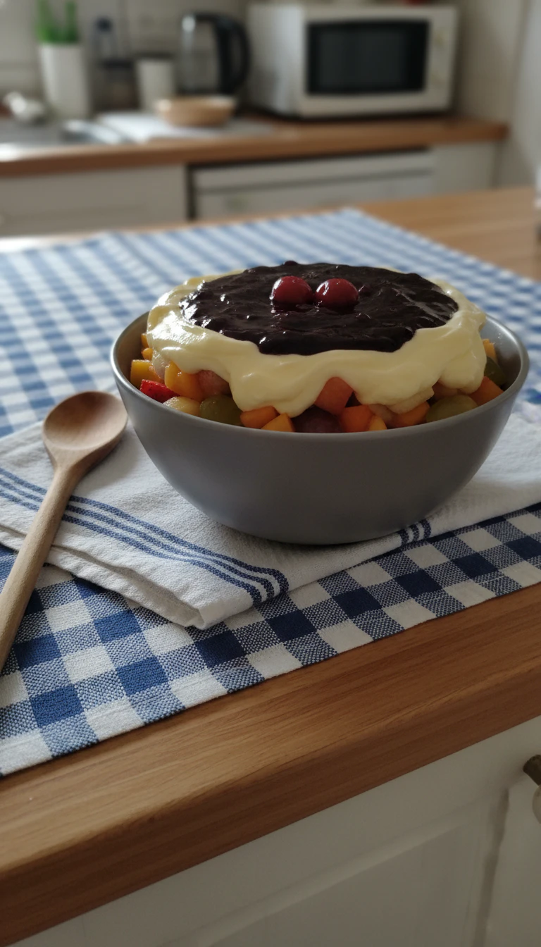 Um pavê leve e delicioso, perfeito para quem busca uma sobremesa saborosa e sem culpa. Com camadas de biscoito champagne umedecido, creme de leite condensado light e uma irresistível salada de frutas, finalizado com um toque de calda de chocolate diet.