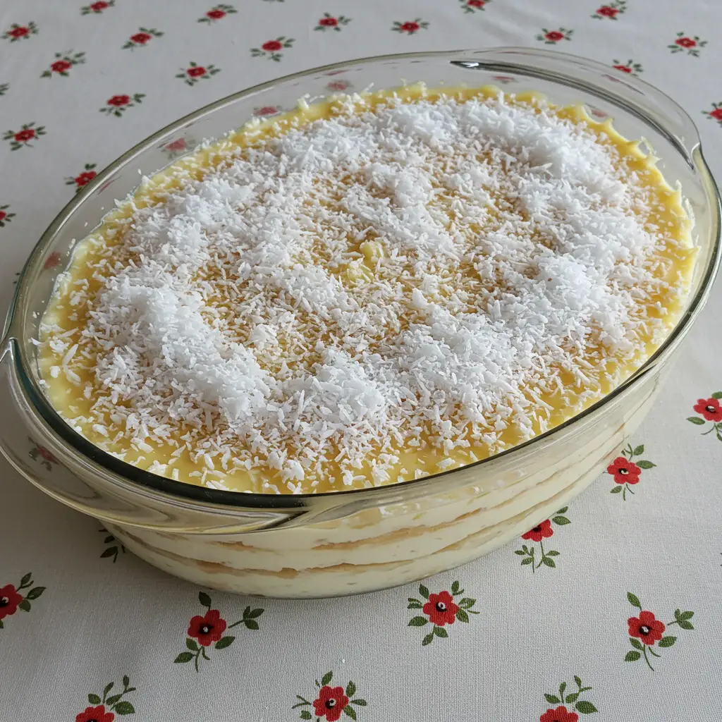 Um clássico pavê mineiro, com camadas de pão-de-ló macio, cremoso pudim de leite condensado, abacaxi suculento e coco ralado. Uma sobremesa perfeita para encantar seus convidados!