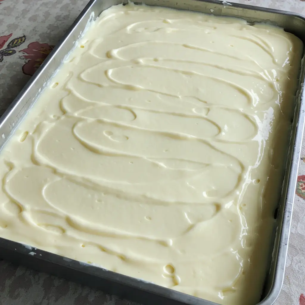 Finalize com o creme de leite e incorpore delicadamente as claras em neve. Espalhe uniformemente sobre a última camada.