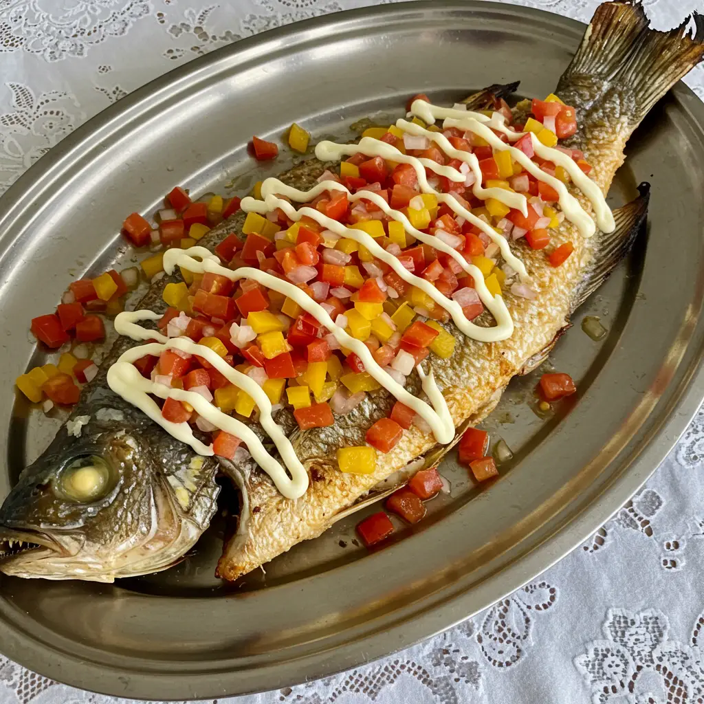 Peixe Assado com Vinagrete e Requeijão Cremoso