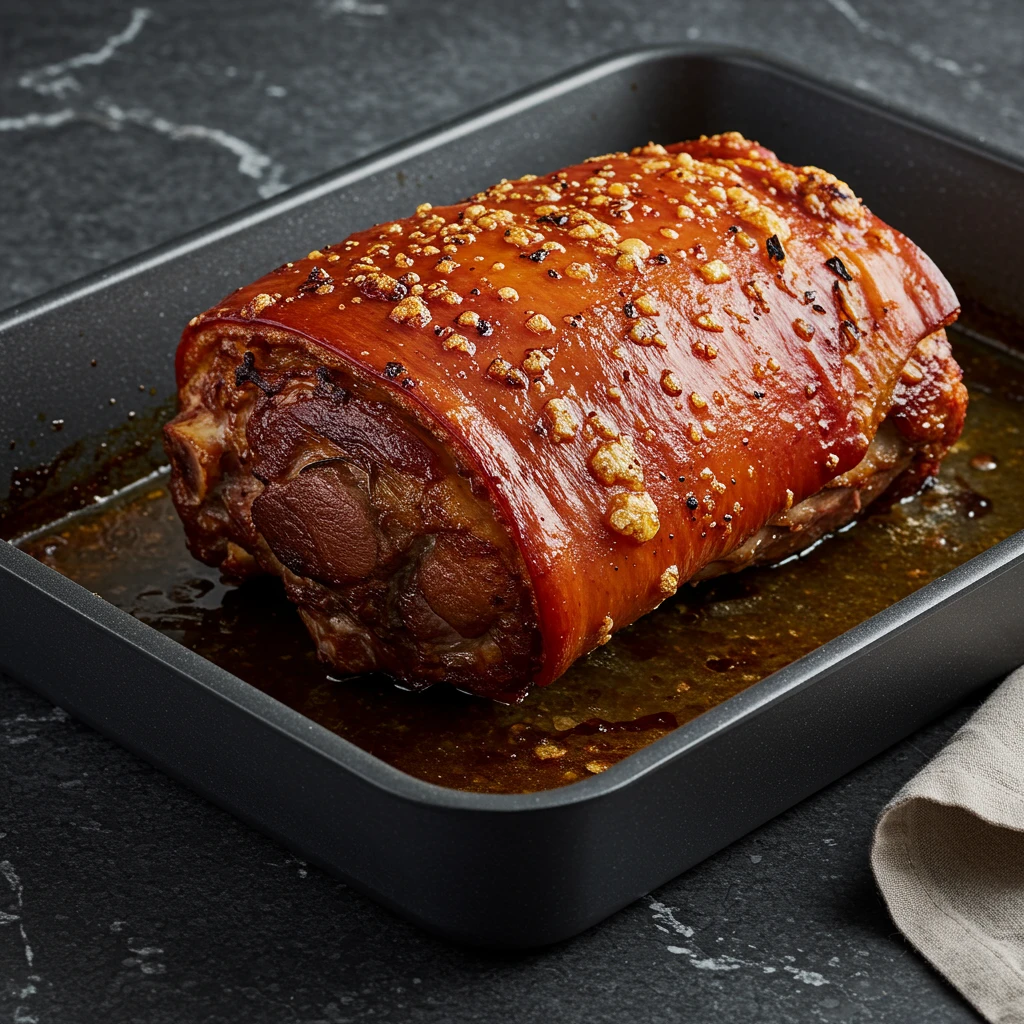 Um pernil suculento e saboroso, assado lentamente até ficar macio e com uma pele crocante. O toque de whisky confere um aroma e sabor únicos. Perfeito para um almoço de domingo em família!