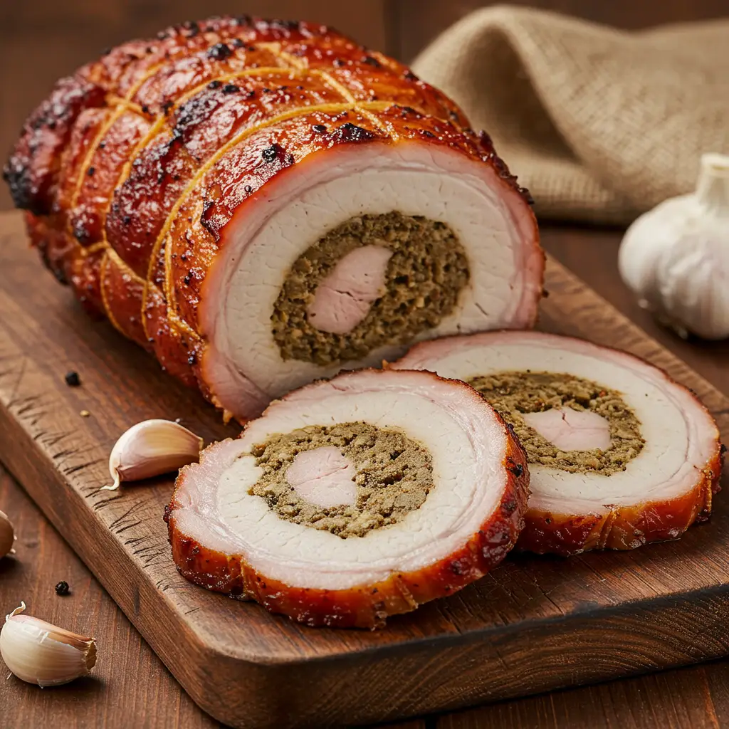 Pernil Recheado com Calabresa ao Molho de Cerveja
