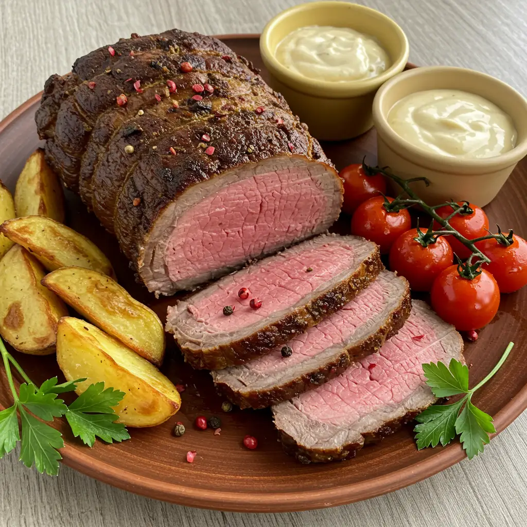 Um pernil suculento e saboroso, marinado em uma mistura de mostarda, ervas e mel, resultando em um prato principal inesquecível para ocasiões especiais. O molho agridoce, feito com o próprio caldo do assado, completa a experiência.