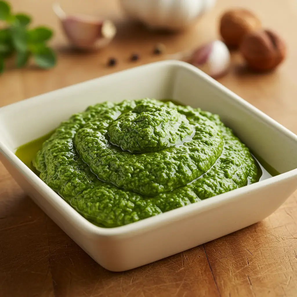 Um pesto fresco e saboroso, perfeito para acompanhar massas, carnes ou ser usado como pasta para sanduíches. Feito com ingredientes simples e de alta qualidade, este pesto caseiro é uma explosão de sabores.