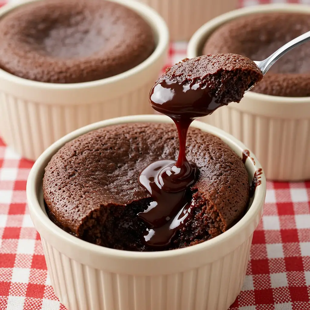 Asse em forno preaquecido por 18 a 20 minutos, ou até que o topo esteja rachado e o centro ainda cremoso.