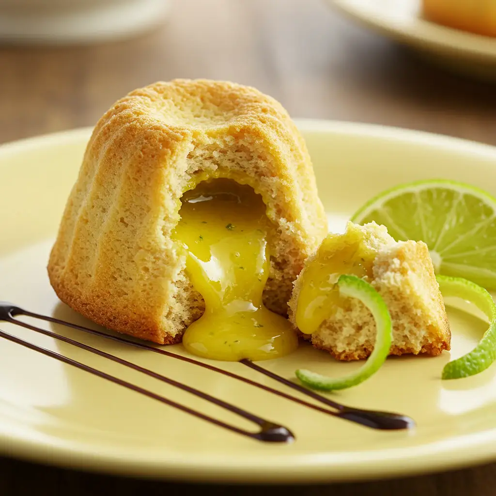 5. **Montagem e assamento:** Unte forminhas próprias para petit gateau com manteiga e enfarinhe-as. Preencha cada forminha com a massa até a metade, coloque uma trufa de recheio de limão no centro e complete com mais massa, até ¾ da capacidade. Asse em forno preaquecido a 250°C por aproximadamente 7 minutos, ou até as bordas estarem firmes e o centro ainda mole.
