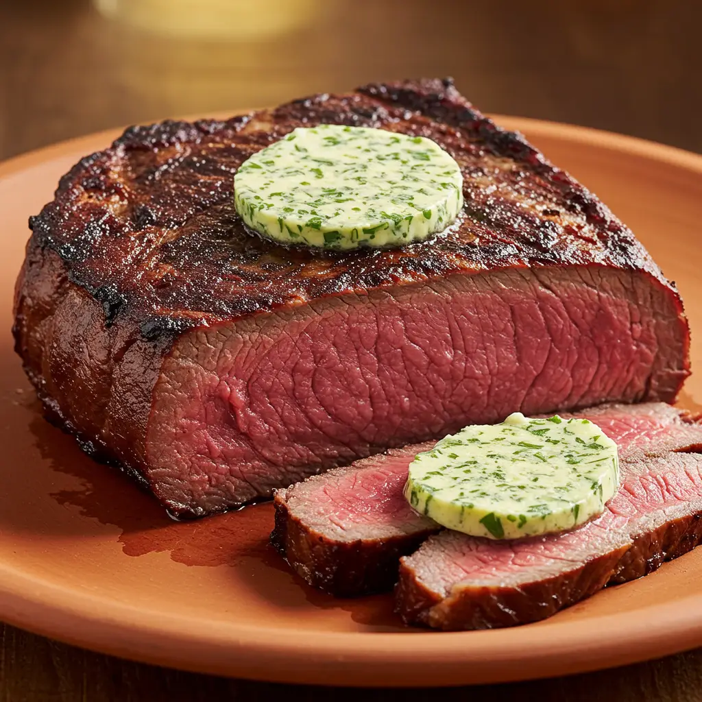 Uma picanha grelhada na perfeição, coberta com uma manteiga aromática de ervas finas. Uma explosão de sabor que vai te surpreender! Ideal para um jantar especial.