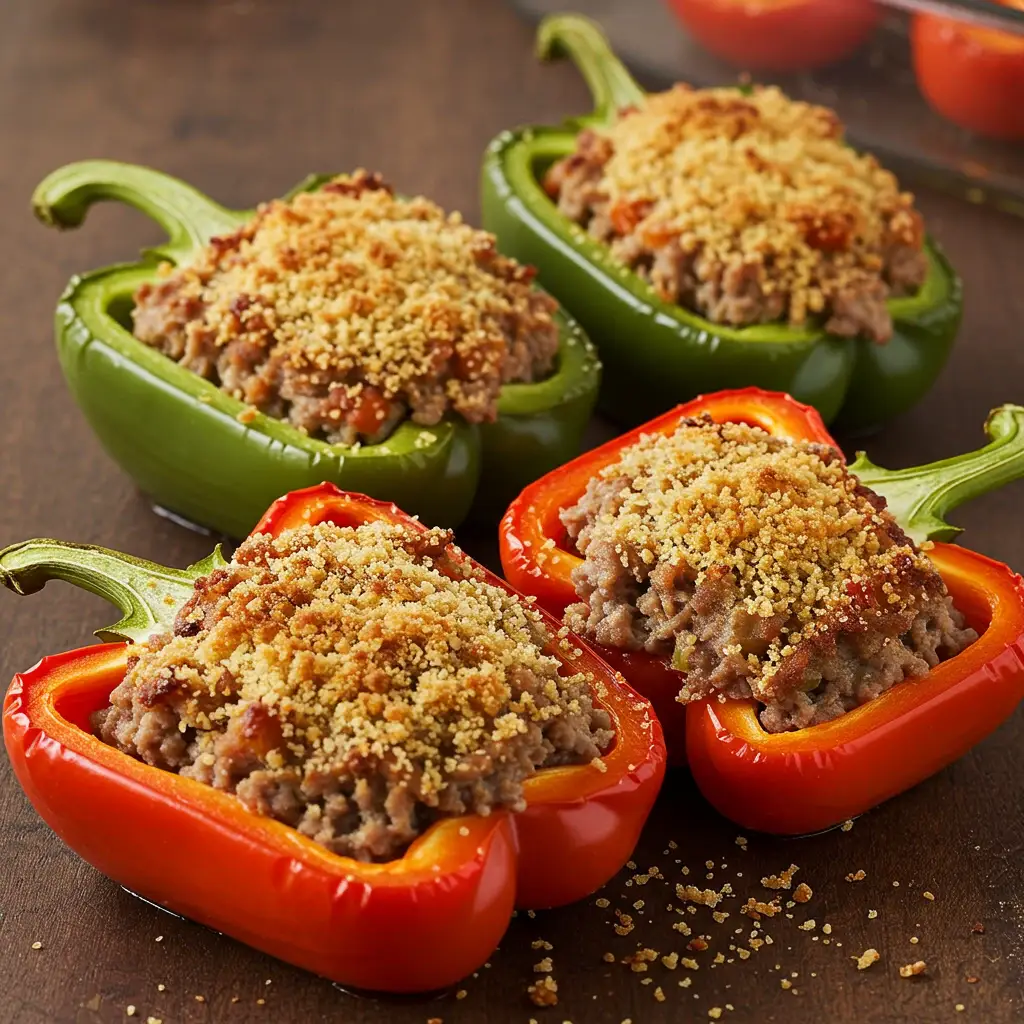 Deliciosos pimentões vermelhos recheados com um saboroso mix de carne moída, cogumelos e queijo mussarela. Uma receita fácil e perfeita para um jantar especial ou um almoço em família.