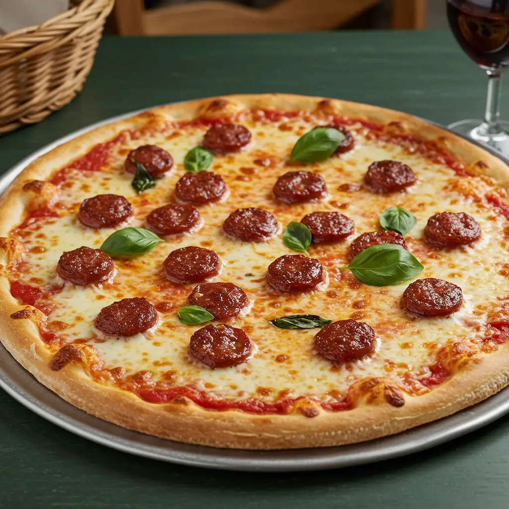 Uma saborosa pizza com a tradicional Linguiça Blumenau. Massa fina e crocante, coberta com mussarela derretida e o toque final do manjericão fresco. Uma explosão de sabores da culinária brasileira!