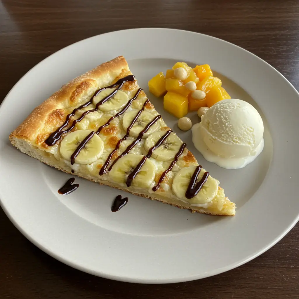 Uma deliciosa pizza doce, perfeita para um lanche da tarde ou sobremesa. Massa fofinha, bananas caramelizadas e o toque especial do leite condensado. Uma receita simples e irresistível!