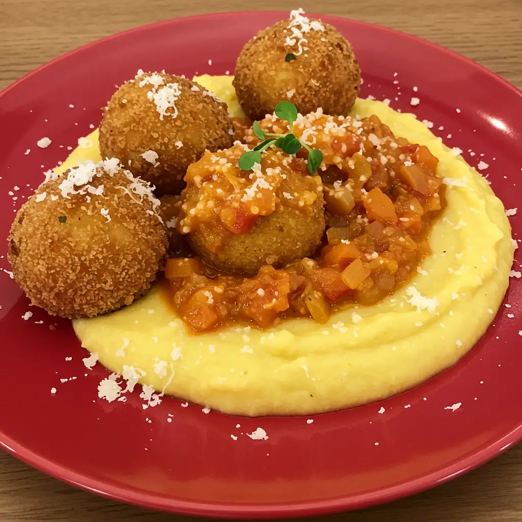 Uma combinação irresistível de polenta cremosa e almôndegas suculentas ao molho de tomate, perfeita para um almoço em família ou um jantar aconchegante. Sabor e tradição em cada garfada!
