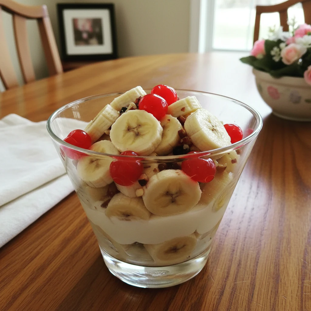 Cubra com o iogurte de abacaxi e sirva imediatamente.