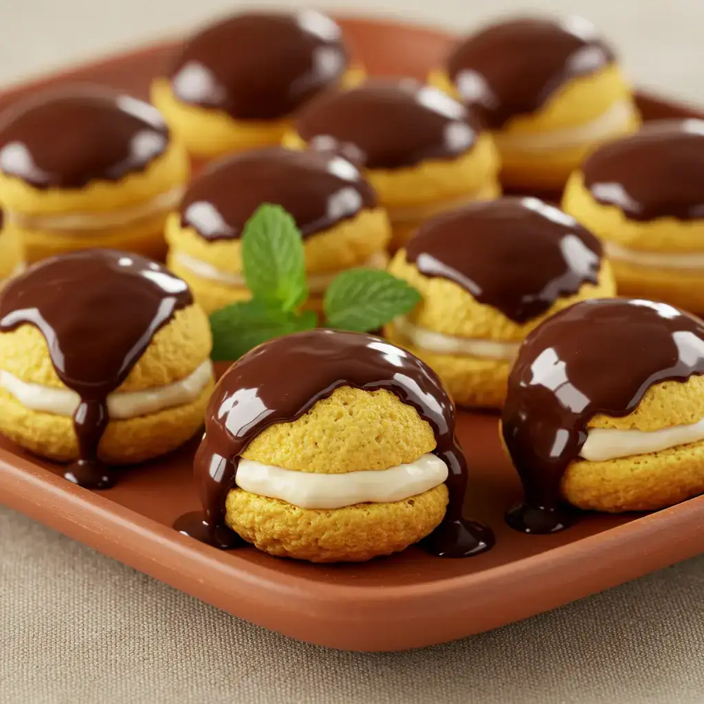 Deliciosos profiteroles crocantes por fora e cremosos por dentro, recheados com um irresistível creme de chocolate e chantilly leve e saboroso. Uma sobremesa perfeita para impressionar!