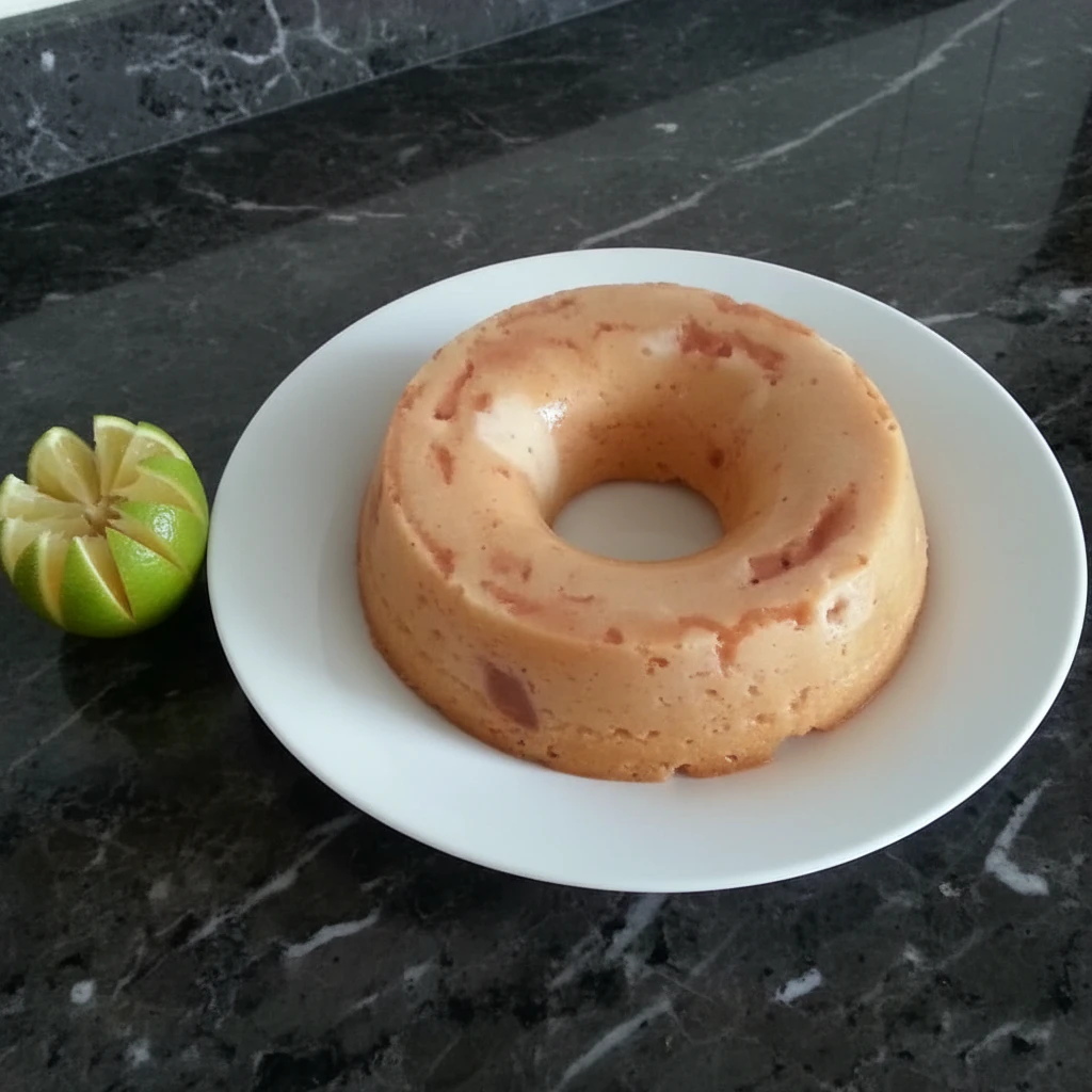 Em uma forma redonda com furo no centro, prepare um caramelo com 1 xícara (chá) de açúcar.