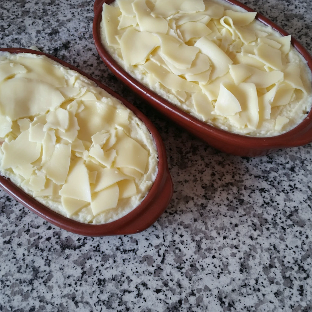Polvilhe os 100g de mussarela restantes sobre o purê.