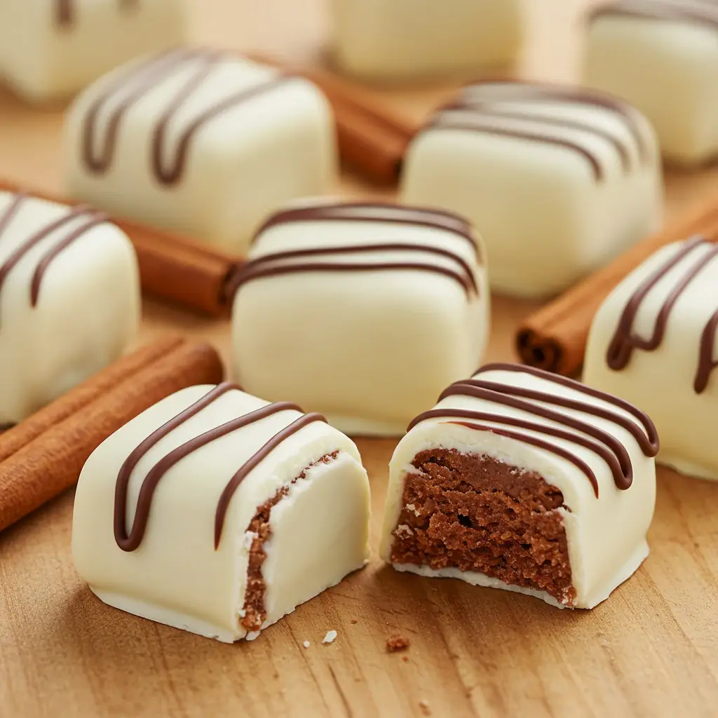 Deliciosos quadradinhos de chocolate ao leite e branco, com um toque mágico de gengibre, canela e cravo. Uma explosão de sabor e textura que derrete na boca!