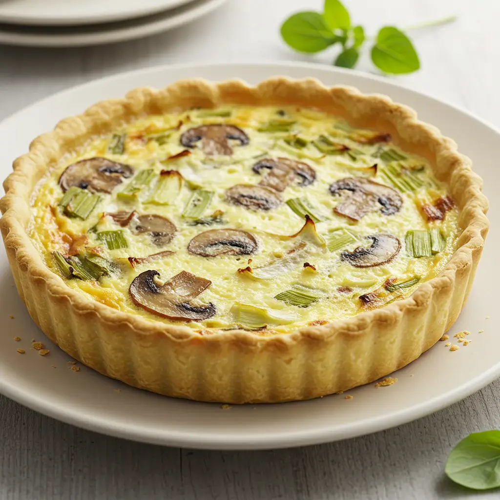 Uma quiche saborosa e sofisticada, com o sabor delicado do alho-poró e shitake, combinando perfeitamente com o queijo cottage e um mix de folhas verdes. Uma ótima opção para um almoço leve e elegante.