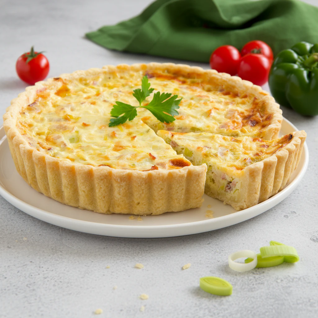 Uma quiche deliciosa e fácil de fazer, perfeita para um almoço ou jantar especial. A combinação de queijo, bacon e uma massa crocante é irresistível. Ideal para um lanche da tarde ou entrada sofisticada.