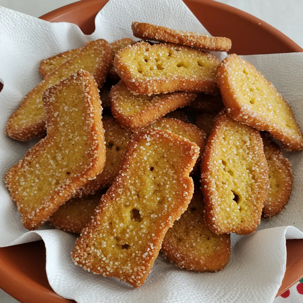 Frite as rabanadas em pequenas porções, virando-as para dourar dos dois lados. O tempo de fritura varia de acordo com a espessura do pão e o calor do óleo.
