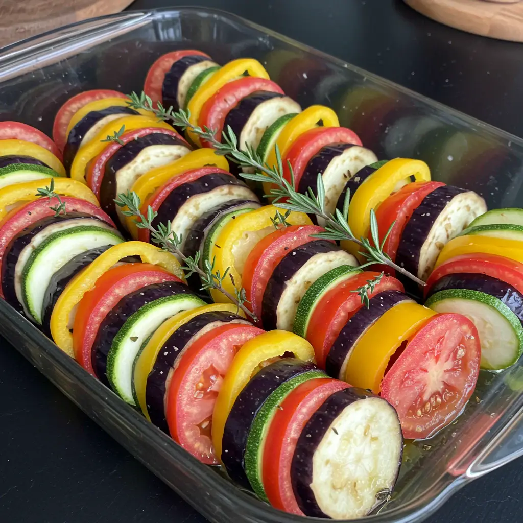 Esta deliciosa ratatouille é uma explosão de sabores com legumes frescos e ervas aromáticas, perfeita para acompanhar qualquer refeição ou servir como prato principal. Uma receita saudável e colorida que vai encantar a todos!
