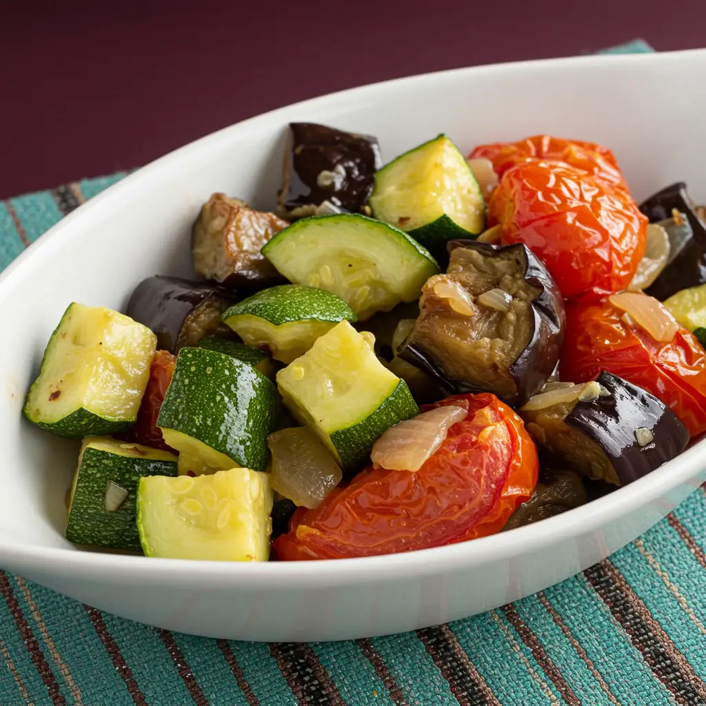 Um delicioso ratatouille com toque brasileiro! Berinjela, pimentões coloridos e abobrinha assados lentamente, resultando em um sabor intenso e irresistível. Perfeito como acompanhamento ou prato principal vegetariano.