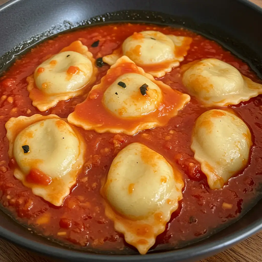 Deliciosos raviólis caseiros, com massa leve e recheio saboroso de carne moída, cobertos por um molho de tomate fresco e aromático. Uma experiência gastronômica italiana com toque brasileiro!