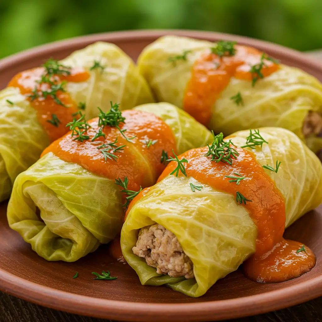 Um prato leve e saboroso, perfeito para um jantar saudável e cheio de sabor. O repolho macio envolve um delicioso recheio de arroz integral, peito de peru e ervas frescas. Uma opção nutritiva e fácil de preparar!
