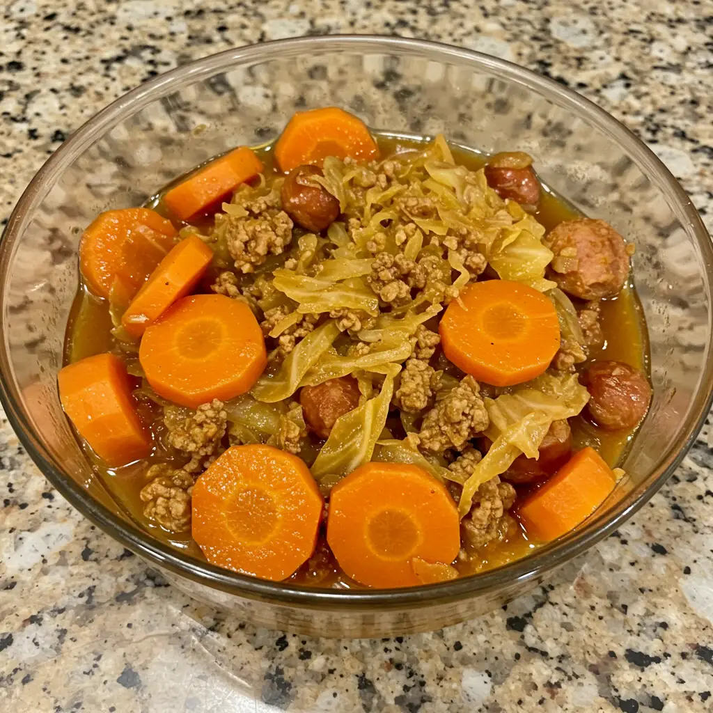 Uma deliciosa combinação de repolho, linguiça e cenoura, este prato é perfeito para acompanhar suas refeições e traz um sabor caseiro irresistível.