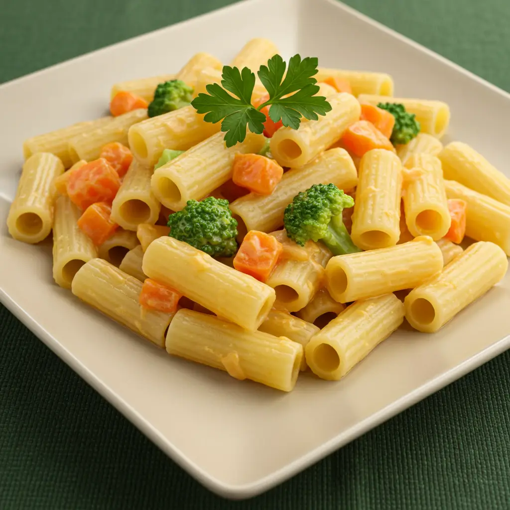 Um prato prático e saboroso, perfeito para um jantar rápido e cheio de sabor. O creme de leite envolve o rigatoni e os legumes frescos, criando uma combinação deliciosa e nutritiva.