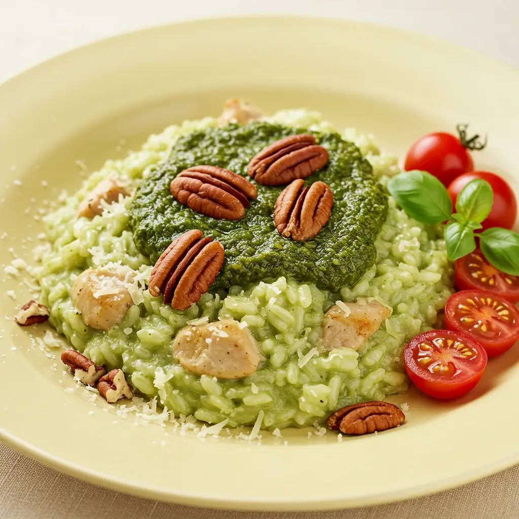Risoto Cremoso de Frango com Pesto de Nozes