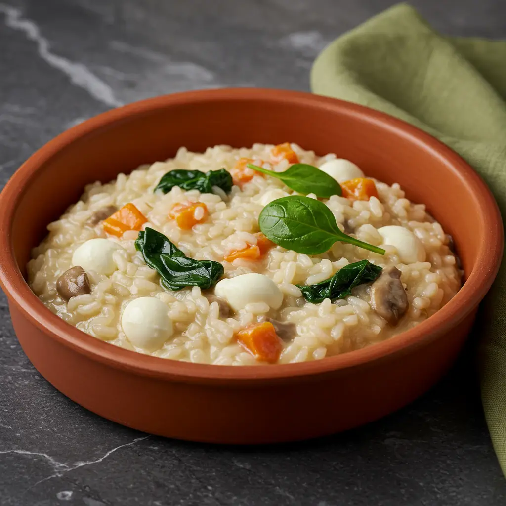 Um risoto cremoso e saboroso, que combina a textura do arroz integral com o doce da banana-passa e o toque fresco da mussarela de búfala. Uma opção leve e nutritiva para uma refeição deliciosa!
