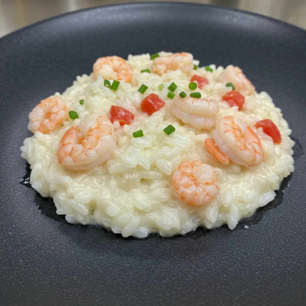 Um risoto leve e saboroso, perfeito para uma refeição sofisticada sem complicações. Camarões suculentos em um creme de arroz delicado, finalizado com queijo e ervas frescas.
