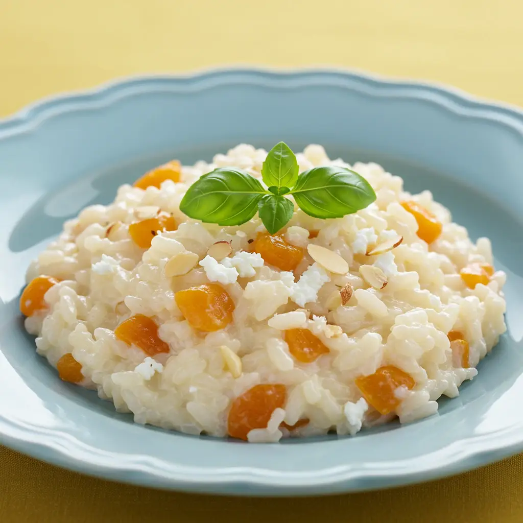 Risoto de Damasco com Amêndoas e Queijo Cottage