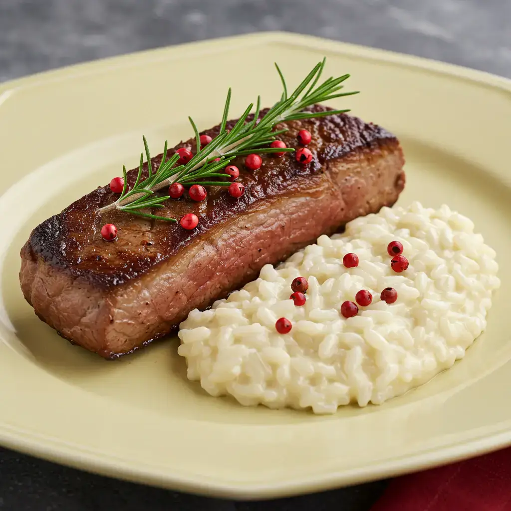 Um risoto cremoso e sofisticado, com o sabor marcante do filé mignon e o toque picante da pimenta rosa. A combinação perfeita de texturas e sabores para uma refeição inesquecível. Ideal para um jantar romântico ou uma ocasião especial.