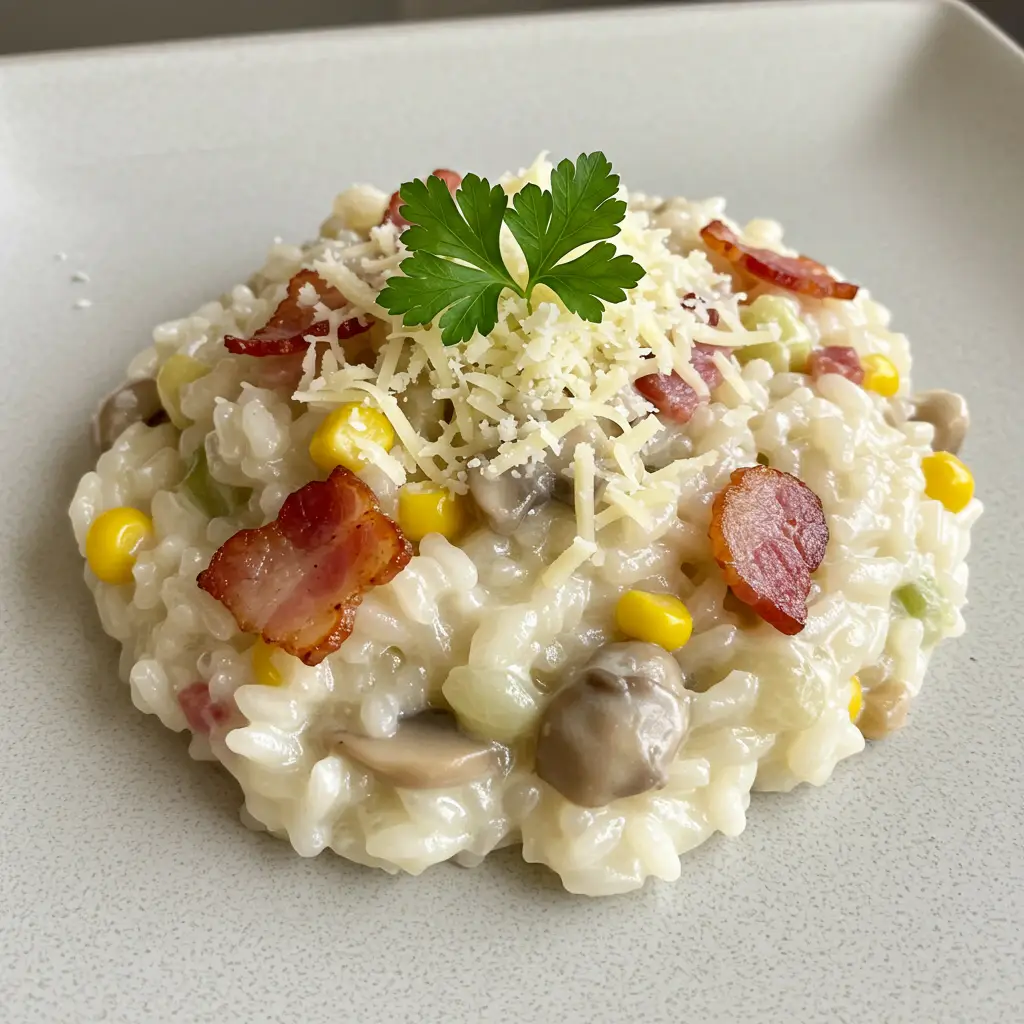 Um risoto cremoso e saboroso, com o sabor delicado da abobrinha e o toque defumado do bacon. Perfeito para um jantar especial ou uma refeição reconfortante.