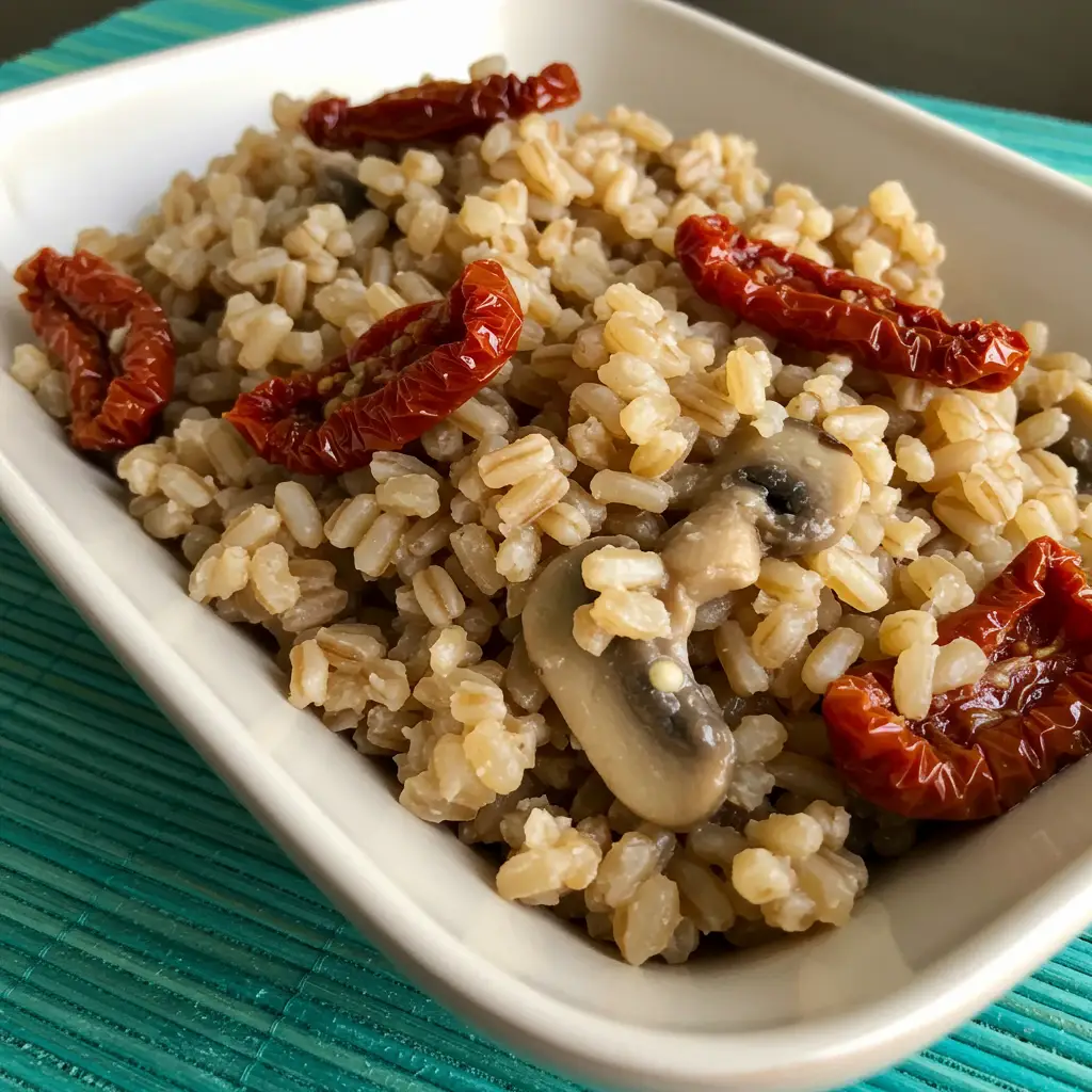 Um risoto integral saboroso e nutritivo, com o toque especial dos cogumelos e o sabor intenso do tomate seco. Uma opção leve e sofisticada para um jantar especial.
