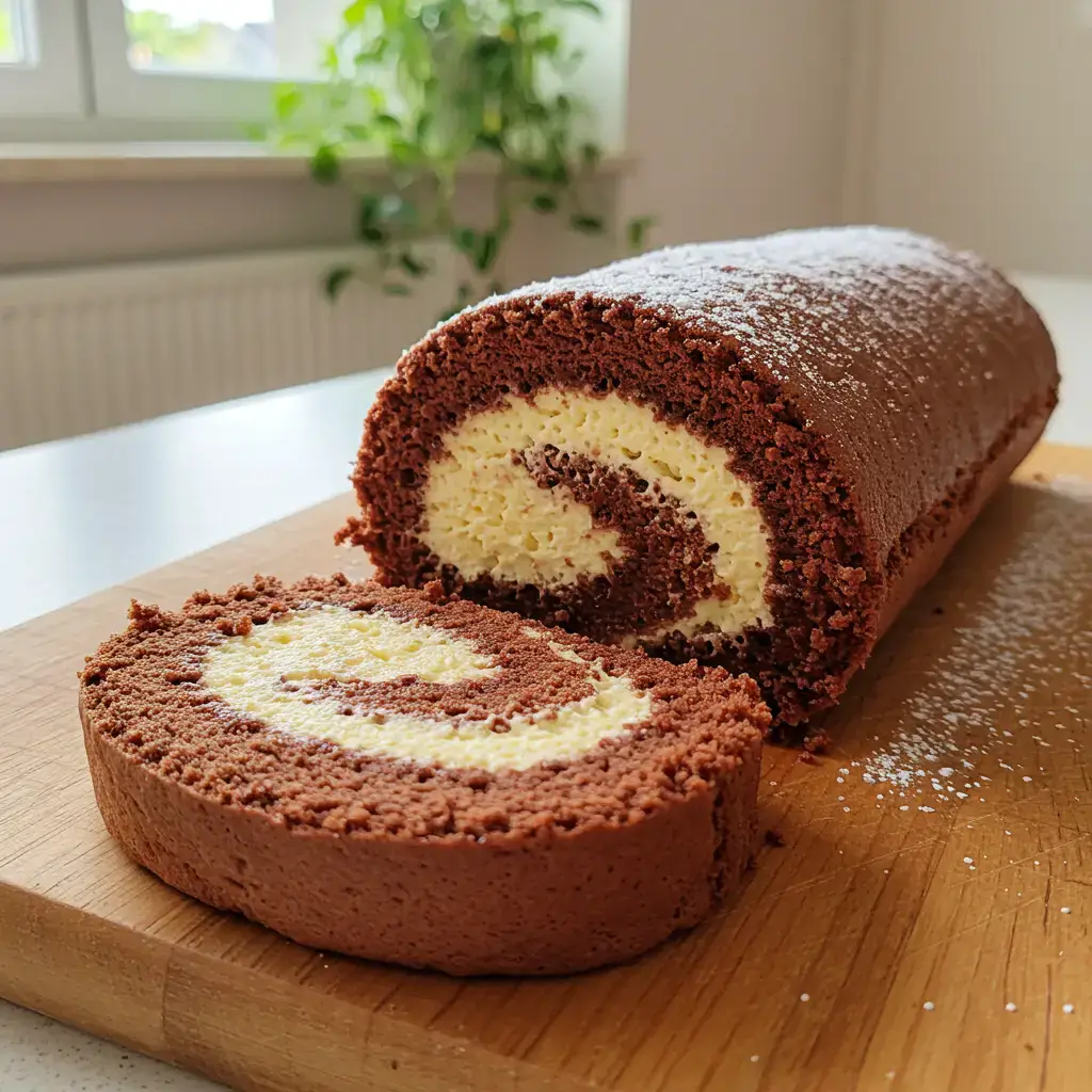 Delicioso rocambole de chocolate, macio e úmido, com um irresistível recheio cremoso de creme de leite. Uma sobremesa perfeita para encantar seus convidados!